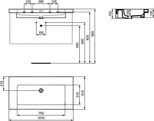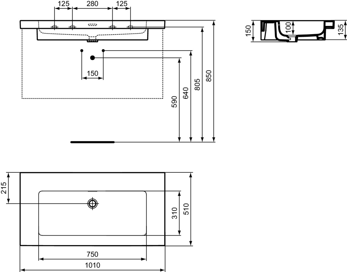 Подвесная раковина Extra 101х51х15 см, санфарфор, Ideal Standard