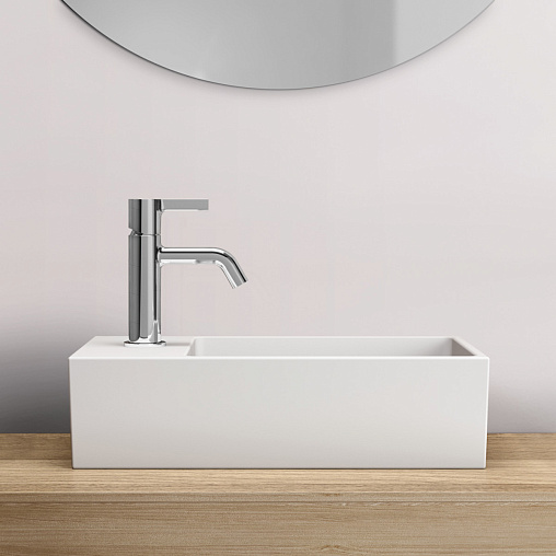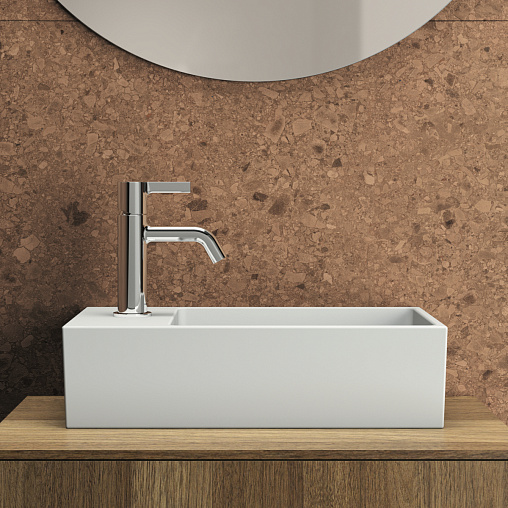 EXTRA Раковина для рук 45х25 см с отверстием под смеситель слева, с отверстием перелива, нижняя поверхность отшлифована
