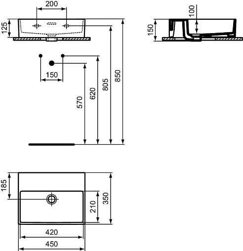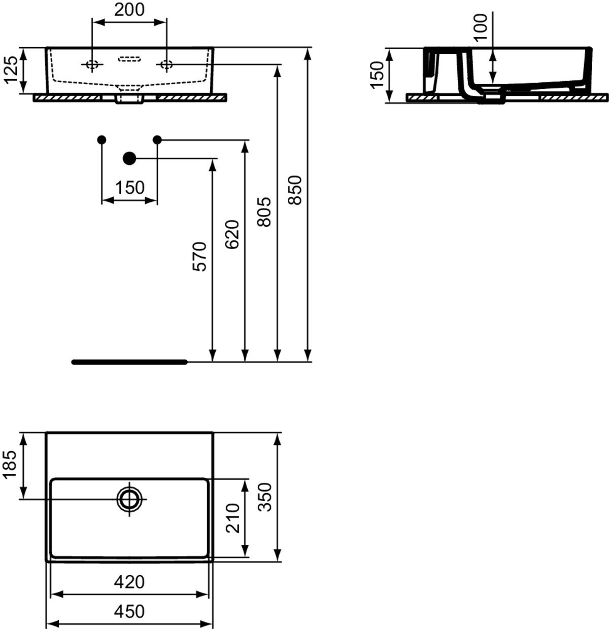 Подвесная раковина Extra 45х35х15 см, нижняя поверхность отшлифована, санфарфор, Ideal Standard