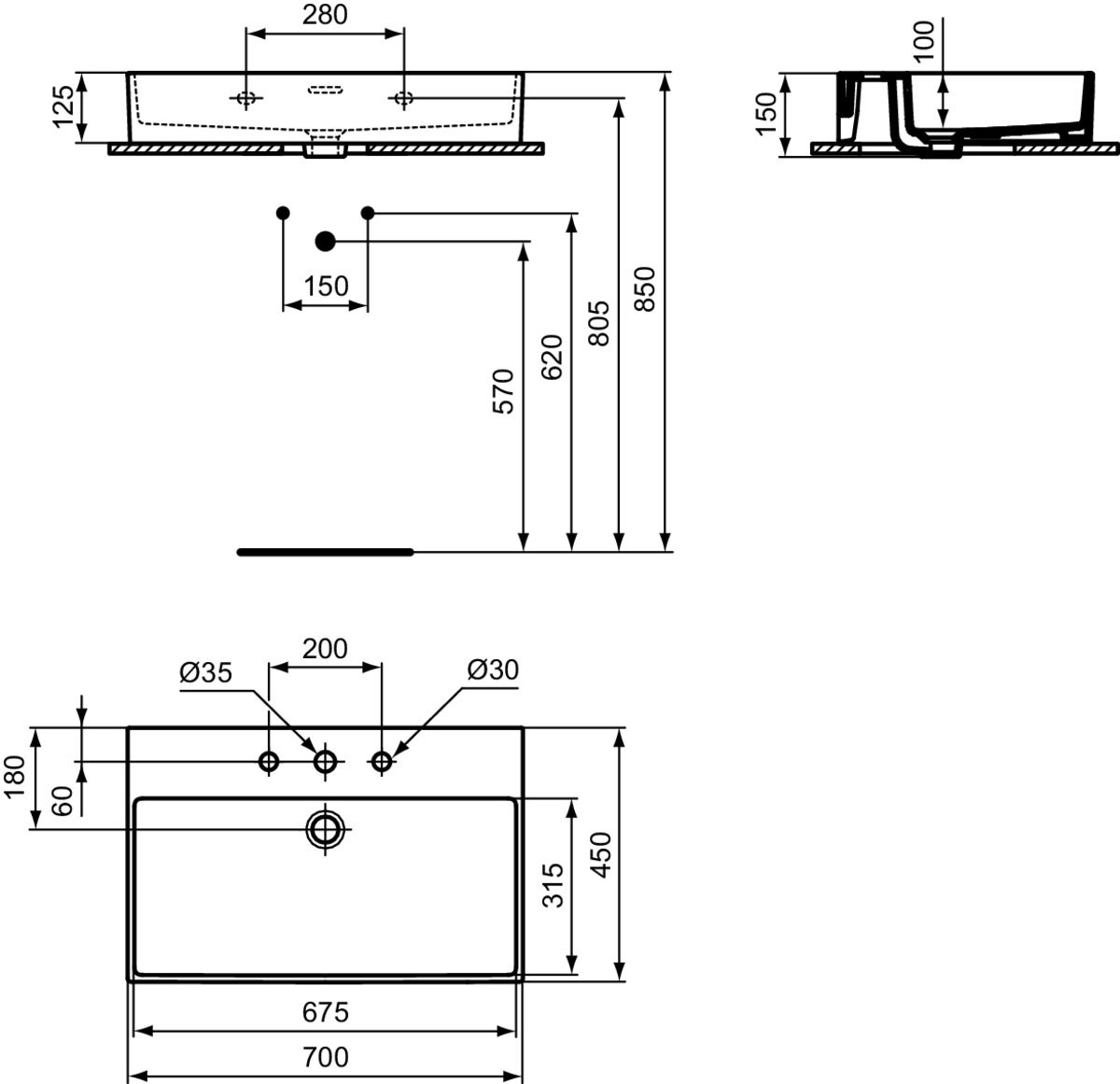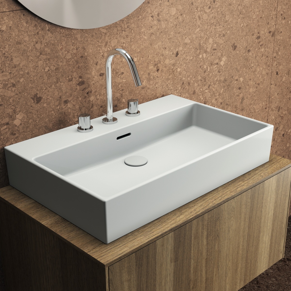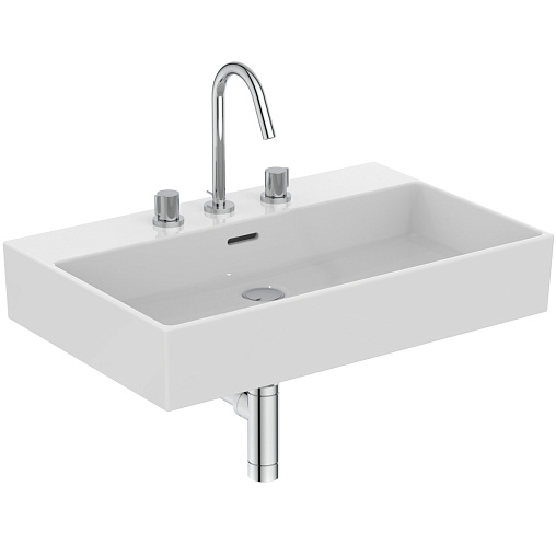 Подвесная раковина Extra 70х45х15 см, с 3 отверстиями под смеситель, нижняя поверхность отшлифована, санфарфор, с отв. под смеситель, Ideal Standard
