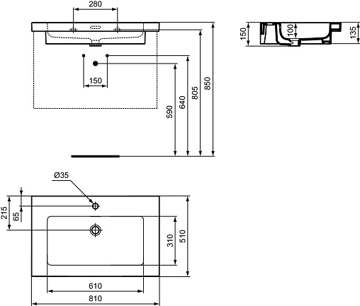 Подвесная раковина Extra 81х51х15 см, санфарфор, с отв. под смеситель, Ideal Standard