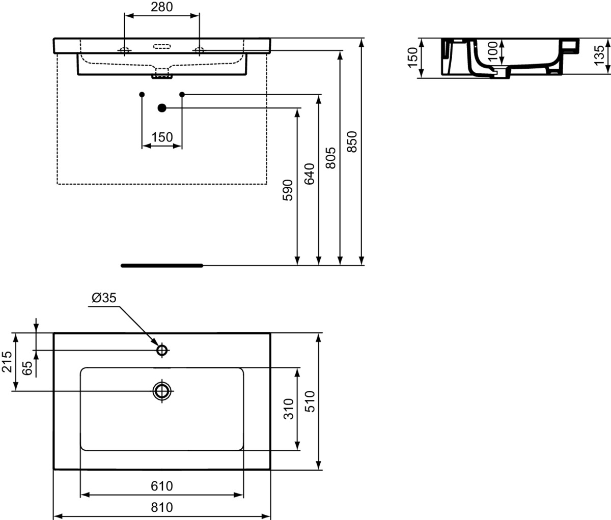 Подвесная раковина Extra 81х51х15 см, санфарфор, с отв. под смеситель, Ideal Standard