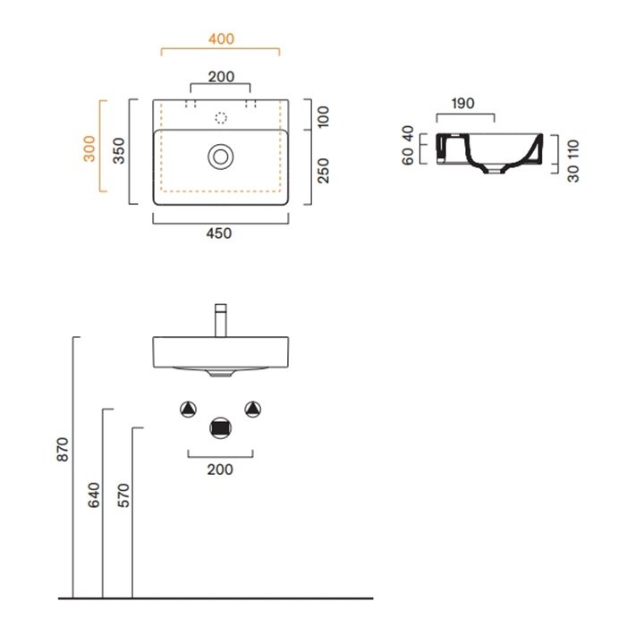 Подвесная раковина Green 45х35х11 см, покрытие Cataglaze+, санфарфор, Catalano