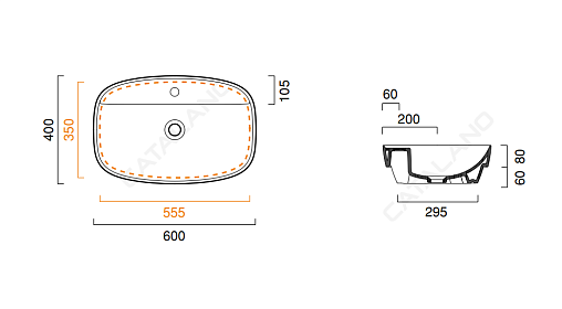 Подвесная раковина Green Lux 60х40х14 см, цвет зеленый матовый, санфарфор, с отв. под смеситель, Catalano