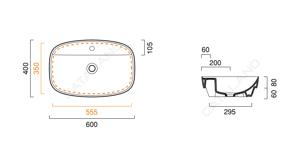 Подвесная раковина Green Lux 60х40х14 см, цвет зеленый матовый, санфарфор, с отв. под смеситель, Catalano