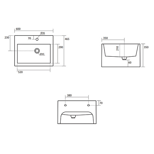 Kanaal 60х46,5х35см, подвесная раковина, санфарфор, с отв. под смеситель, арт. 574001*1, Kerasan