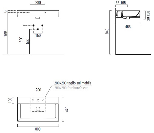 -Монтаж: накладной на тумбу или подвесной вариант с креплением к стене