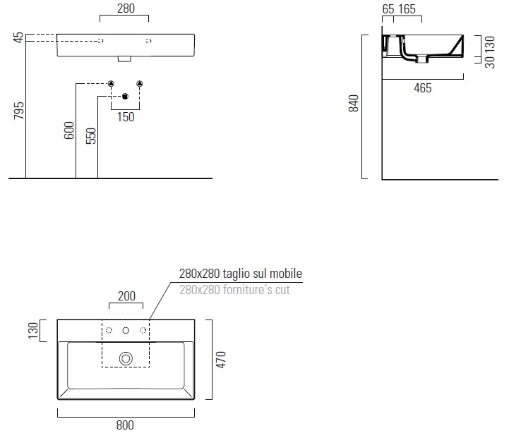 -Монтаж: накладной на тумбу или подвесной вариант с креплением к стене