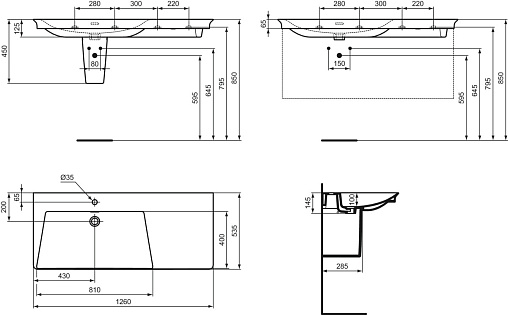 Подвесная раковина La Dolce Vita 126х53,5х14,5 см, левая, санфарфор, с отв. под смеситель, Ideal Standard
