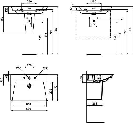 Подвесная раковина La Dolce Vita 66х47х14,5 см, с 3-мя отверстием под смеситель, санфарфор, с отв. под смеситель, Ideal Standard