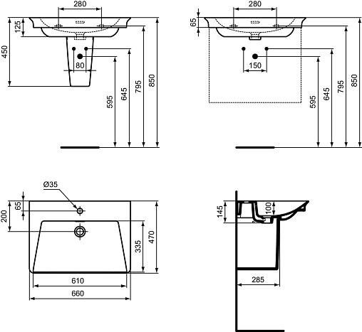 Подвесная раковина La Dolce Vita 66х47х14,5 см, санфарфор, с отв. под смеситель, Ideal Standard