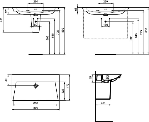 Подвесная раковина La Dolce Vita 86х47х14,5 см, санфарфор, Ideal Standard