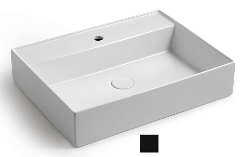White Ceramic Like, накладная/подвесная прямоугольная раковина с отверстием п/с 60x46x13h см, цвет черный матовый