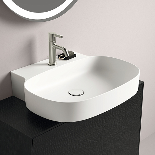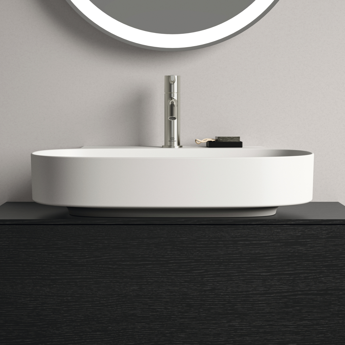 LINDA-X Раковина 60 см с отверстием под смеситель, без отверстия перелива. Технология Diamatec®. Для монтажа со скрытым переливом IdealFlow N8326AA или сливом Free flow E2114xx (заказываются дополнительно). Шлифованный низ, для настенного монтажа с мебелью или столешницей. С монтажным шаблоном. Без крепежа (рекомендованный крепеж - WW965340)