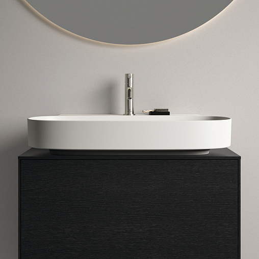 LINDA-X Раковина 75 см с отверстием под смеситель, без отверстия перелива. Технология Diamatec®. Для монтажа со скрытым переливом IdealFlow N8326AA или сливом Free flow E2114xx (заказываются дополнительно). Шлифованный низ, для настенного монтажа с мебелью или столешницей. С монтажным шаблоном. Без крепежа (рекомендованный крепеж - WW965340)
