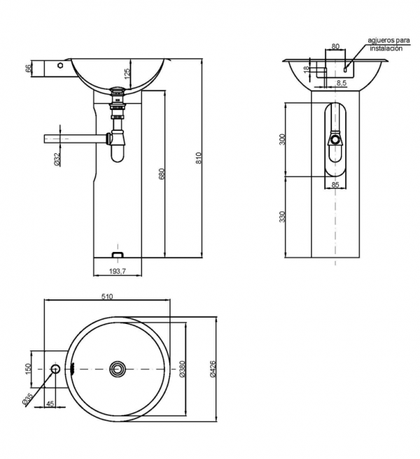 Nofer 42,6х51х81см, подвесная раковина, нержавеющая сталь, с отв. под смеситель, дизайнерская с пьедесталом, арт. 13063.S, Nofer
