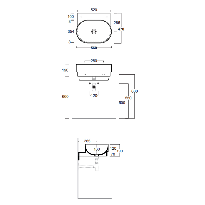 Подвесная раковина PO-MO 56х47х19 см, санфарфор, Simas
