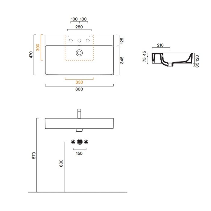 Подвесная раковина Premium 80х47х12 см, покрытие Cataglaze+, санфарфор, с отв. под смеситель, Catalano