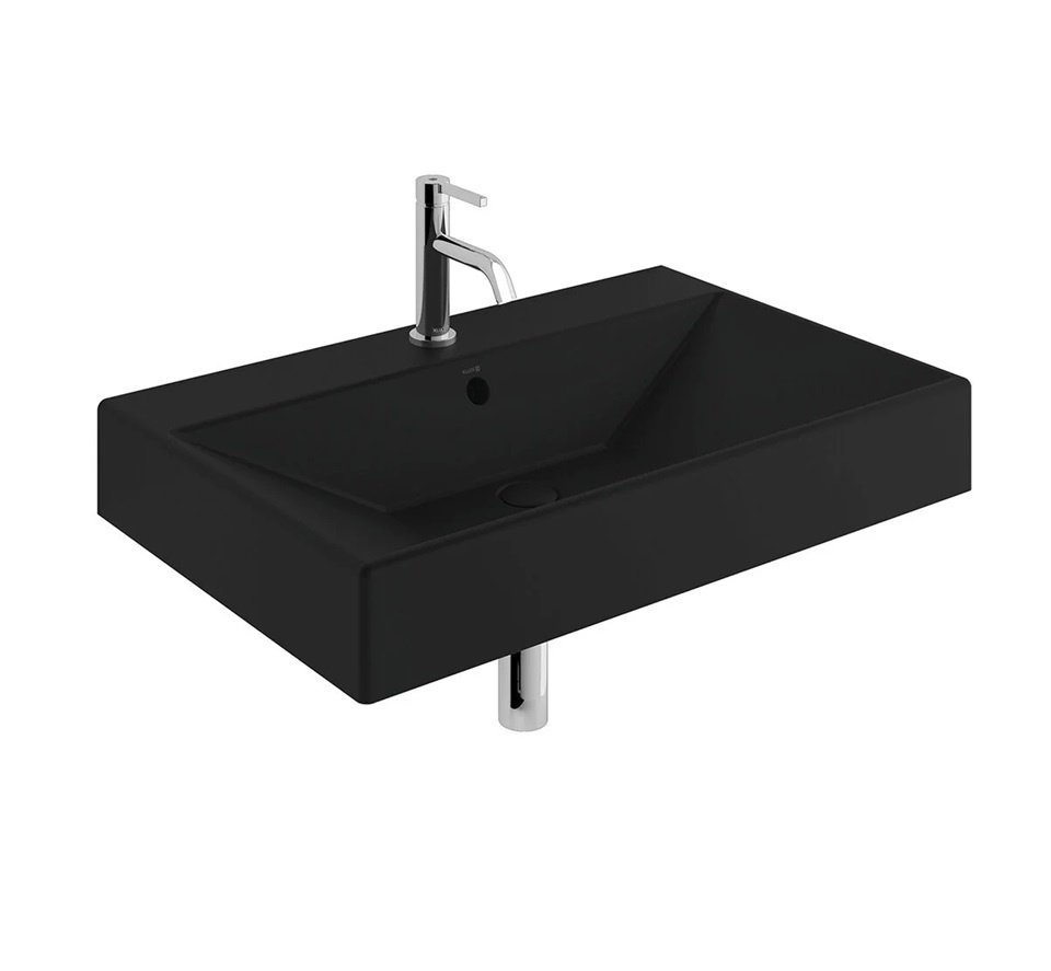 Подвесная раковина Resa 81х50х12 см, санфарфор, черный матовый, с отв. под смеситель, Kludi