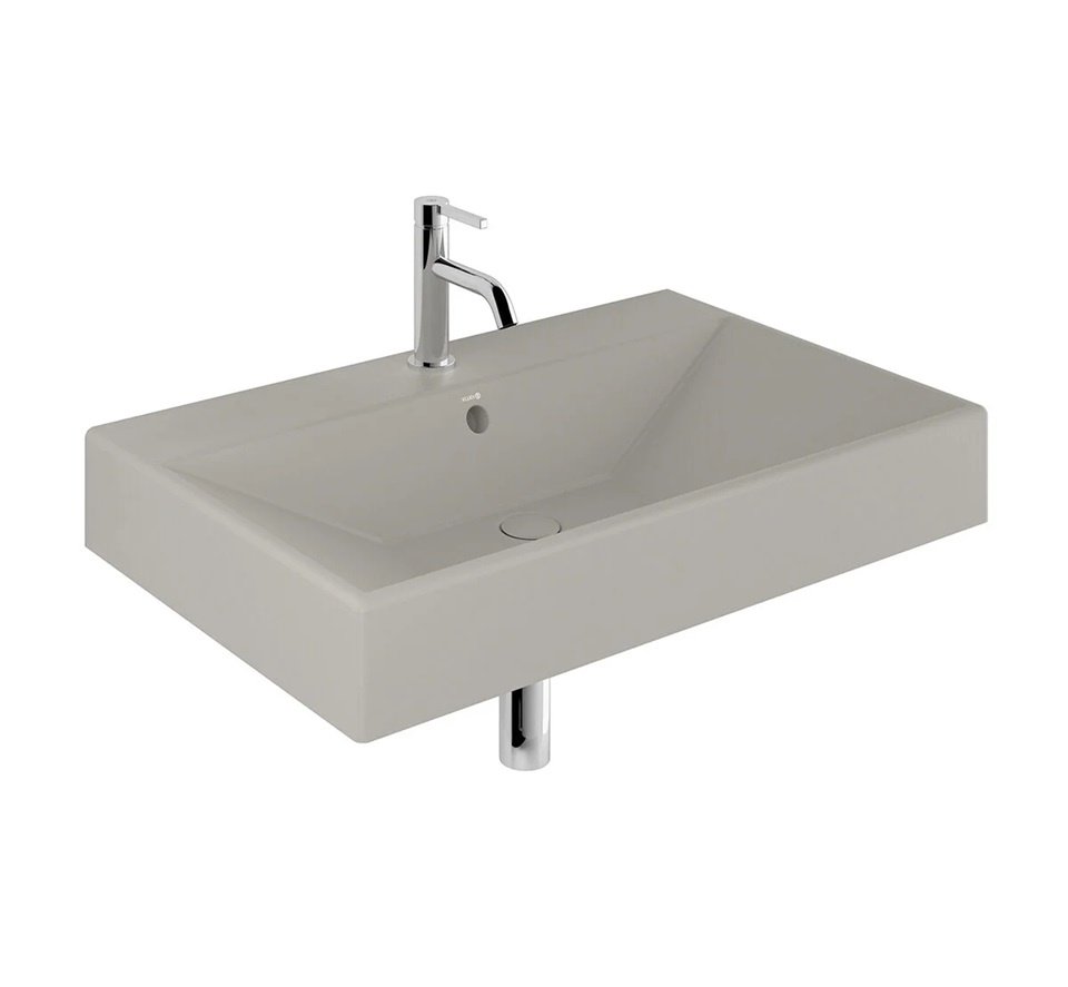 Подвесная раковина Resa 81х50х12 см, санфарфор, серый матовый, с отв. под смеситель, Kludi