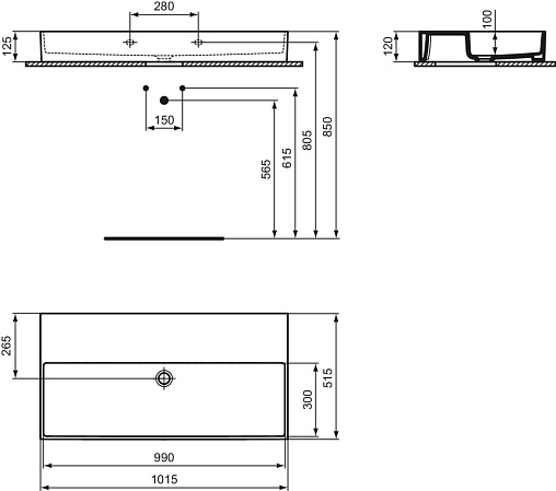 Подвесная раковина Solos 101,5х51,5х12,5 см, санфарфор, Ideal Standard