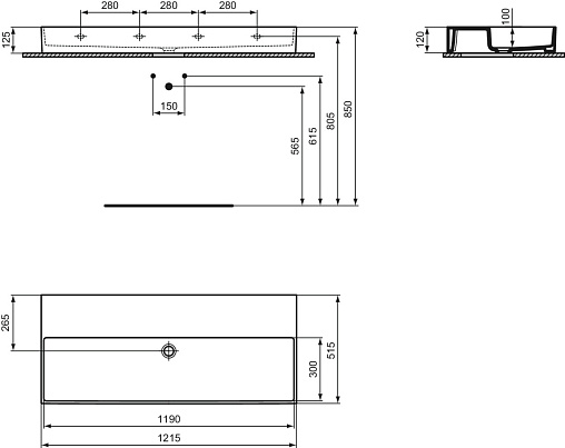 Подвесная раковина Solos 121,5х51,5х12,5 см, санфарфор, Ideal Standard