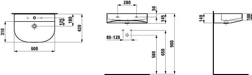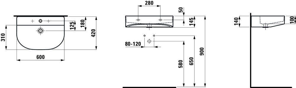 Sonar 60х42х14,5см, подвесная раковина, санфарфор, с отв. под смеситель, арт. 8.1034.2.757.104.1, Laufen