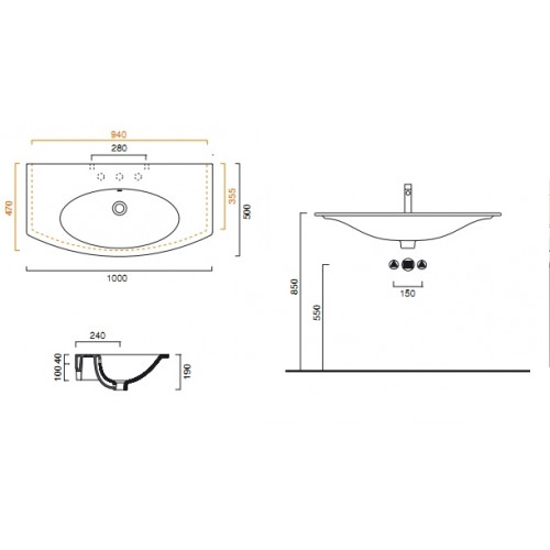 Тип раковины: Подвесная, Встраиваемая сверху