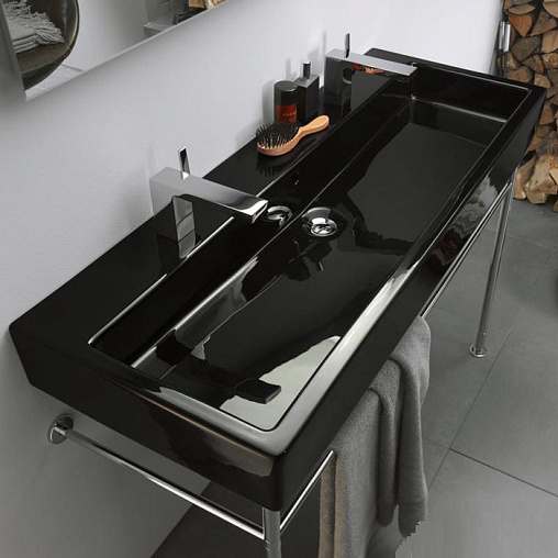 Vero 100х47х17,5см, подвесная раковина, санфарфор, с переливом, 2 отв. под смеситель, черная, арт. 0454100824, Duravit