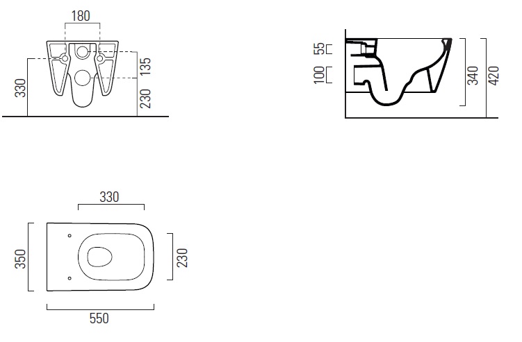 -С креплением FISR5, которое позволяет осуществлять монтаж подвесного унитаза, как снизу, как раньше, так и сверху – через отверстия для крепежа сидения.