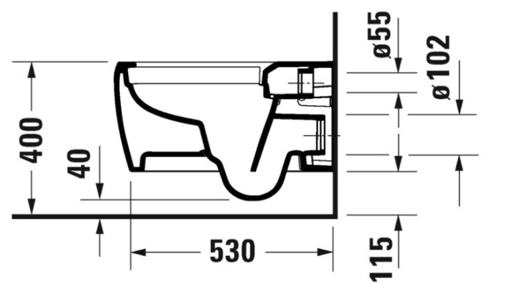 Подвесной унитаз Qatego 39х57 см, с креплением Durafix., безободковый, без сиденья, Duravit