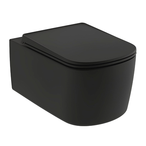 Resa 36х55см, подвесной унитаз, безободковый, с сиденьем, черный матовый, арт. 27WCSET39, Kludi