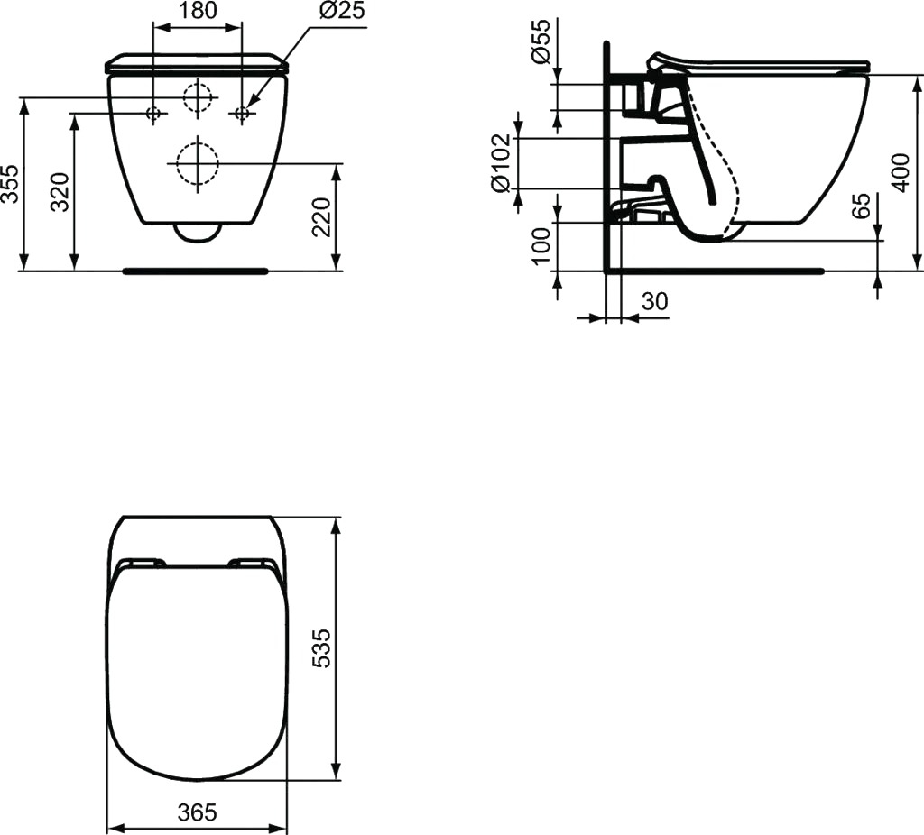 Подвесной унитаз Tesi 36,5х53,5 см, микролифт, быстросъемное, AquaBlade®, безободковый, с сиденьем, Ideal Standard