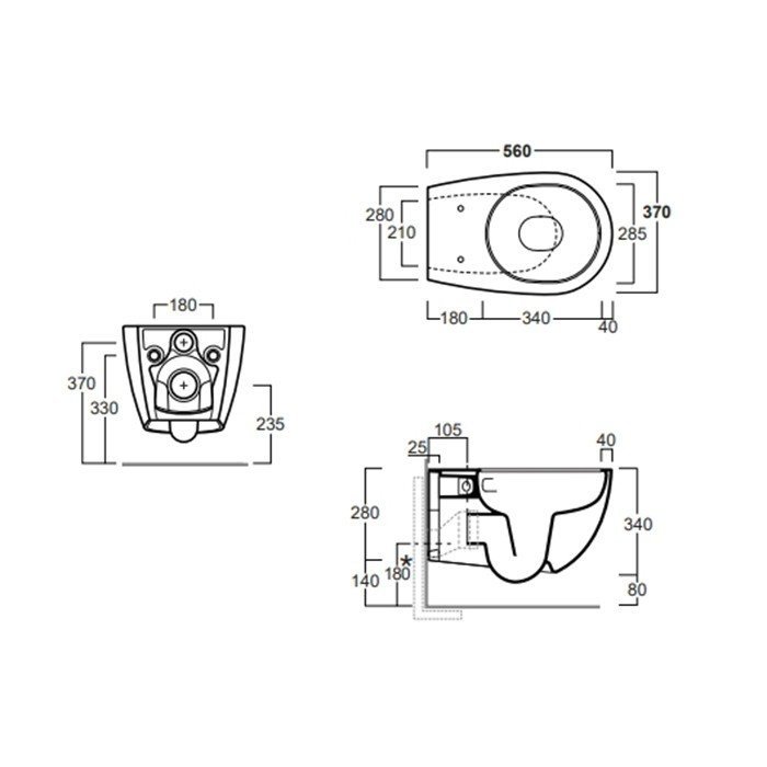 Подвесной унитаз Vignoni 37х56 см, смыв tornado, цвет белый матовый, безободковый, без сиденья, тихий смыв, Simas