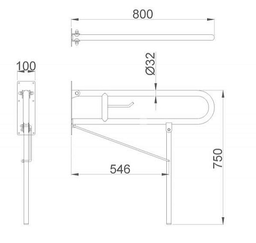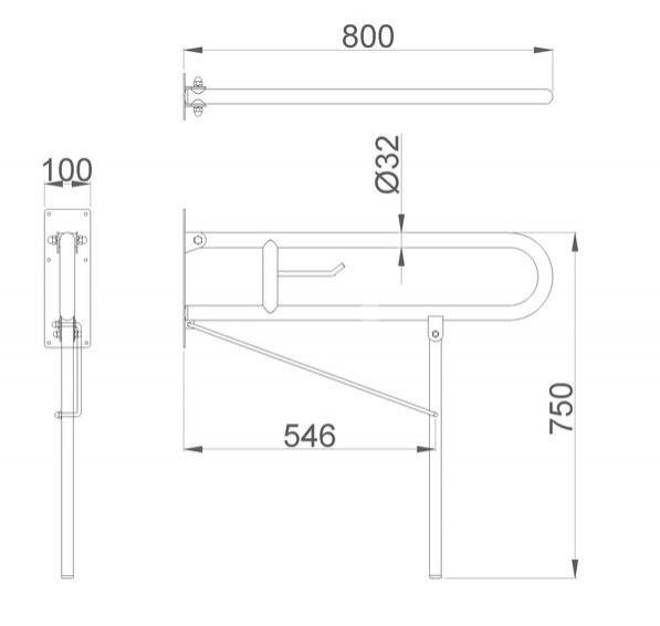 Поручень для унитаза с дополнительным креплением к полу, 850 мм, матовый, Nofer