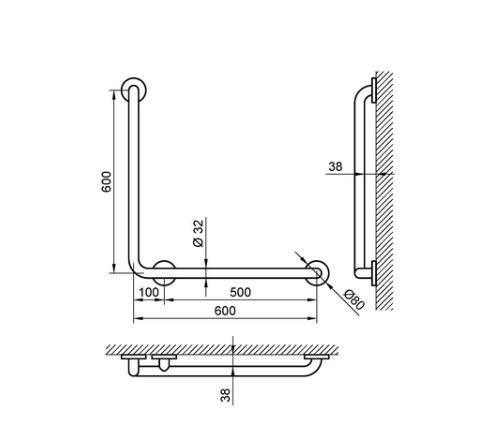 Поручень 600х600 мм, матовый, хром, угловой, Nofer