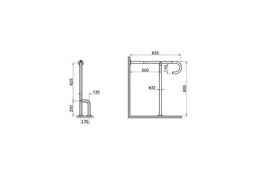 Поручень Arkitekta опорный напольный под углом 90°, хром, Vitra