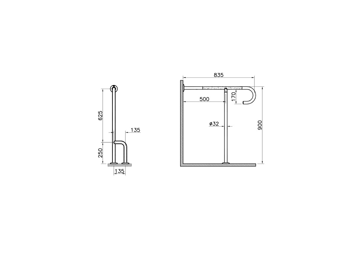 Arkitekta, поручень, хром, опорный напольный под углом 90°, арт. A44469, Vitra