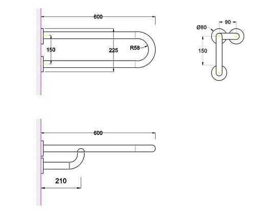 Поручень полукруглый для людей с ограниченными возможностями и оборудования санузлов для МГН и инвалидов