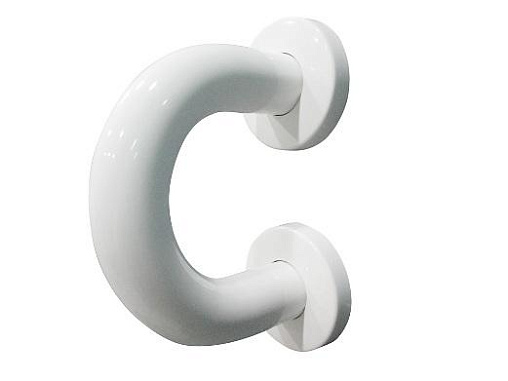 Поручень для крепления на стену, изготовлен из алюминия с покрытием ABS белого цвета с постоянной антибактериальной защитой.