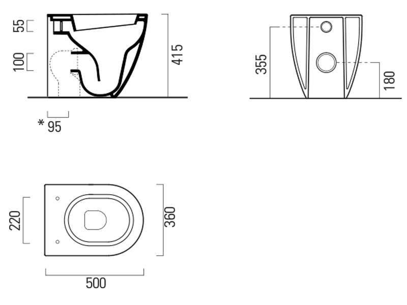 Приставной унитаз Pura 50х36 см, безободковый, без сиденья, тихий смыв, GSI