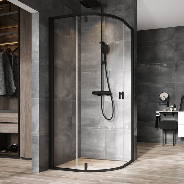 Nexty 100х100х195см, душевое ограждение, 6 мм, четверть круга, черный профиль, арт. 3O6AA300Z1, Ravak