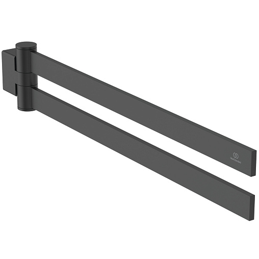 Рожковый полотенцедержатель Conca 45 см, матовый, квадратный дизайн, двойной, цвет черный, поворотный, Ideal Standard