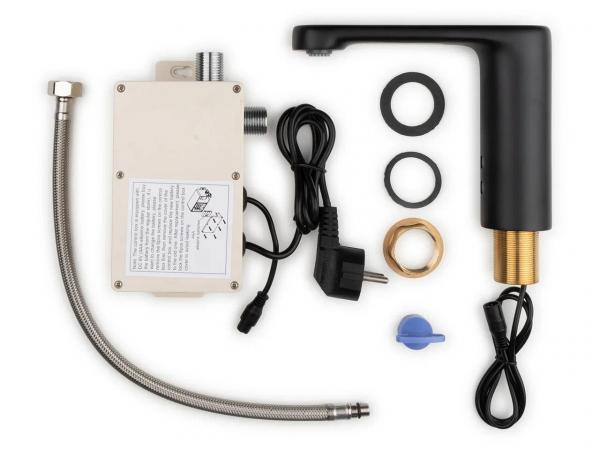 Сенсорный смеситель на раковину Nofer от батареек/от сети, чёрный цвет, Nofer