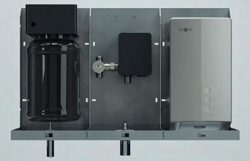 Модульный блок для системы MUMO - Смеситель с лазерным датчиком, устанавливается за зеркалом. Пульт дистанционного управления в комплекте. Подходит для общественных мест с большой проходимостью. Бесконтактное использование, предотвращает распространение микробов