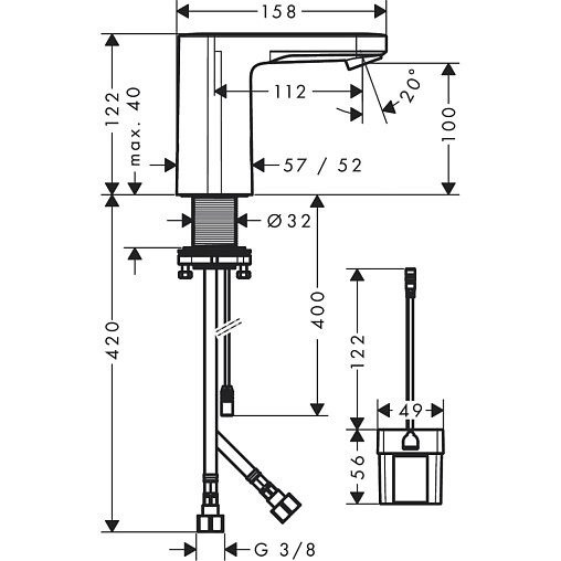 Сенсорный смеситель на раковину Vernis Blend питание от батареек, Hansgrohe