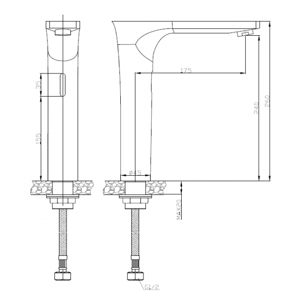 Установка на столешницу с автоматической системой активации через встроенный в нее инфракрасный датчик.