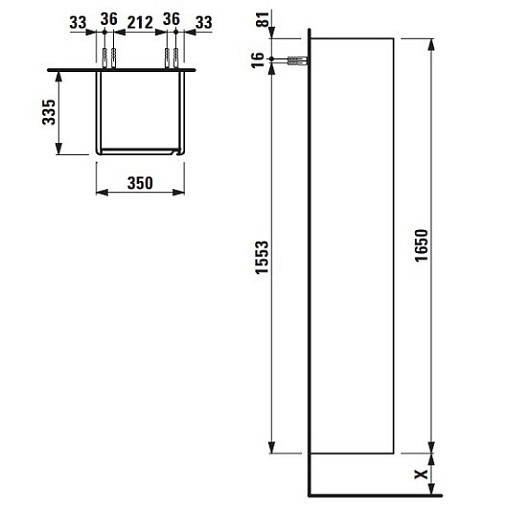 Шкаф-колонна Base 35х33,5х165 см, левый, подвесной монтаж, Laufen