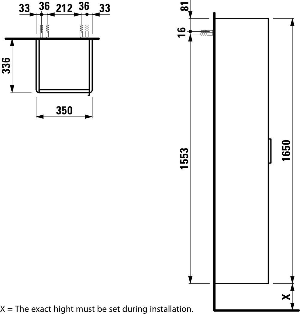 Шкаф-колонна Base 35х33,6х165 см, цвет темно-коричневый, левый, подвесной монтаж, Laufen