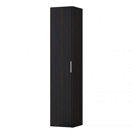 Шкаф - пенал, 350x336x1650 мм, 1 дверца, крепление на петли слева с механизмом мягкого закрывания, внутри одна фиксированная и 4 стеклянные полки, цвет темно-коричневый.